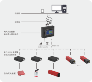 電氣火災報警自動滅火系統主要由報警滅火系統主機、報警滅火控制器和自動滅火裝置三大部分組成,是以異常預警、火災報警、自動滅火、系統狀態顯示、消防記錄為性能要求的—個完整電氣火災監測滅火系統。對被覆蓋的網絡區域環境進行電氣火災防護,實時在線監測、實時感知和采集網絡覆蓋區域中溫度、濕度和煙感狀態。